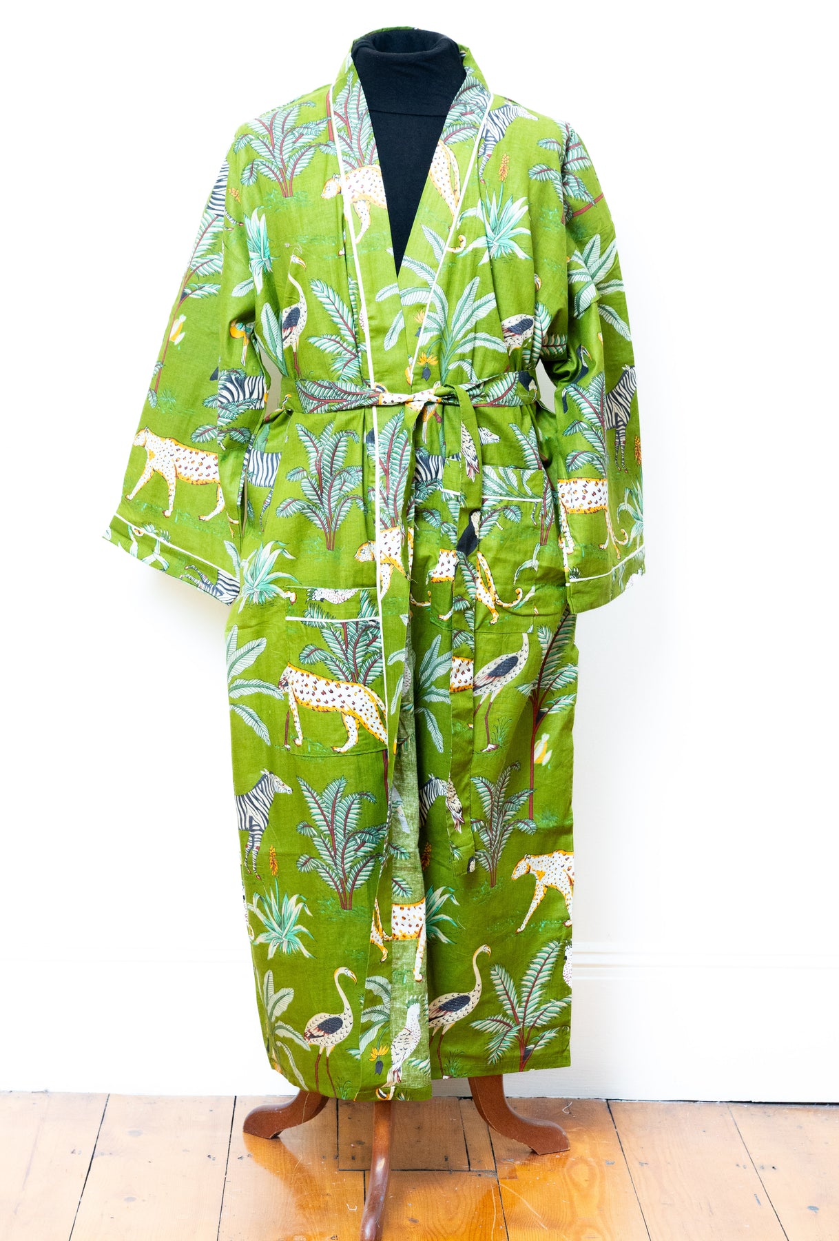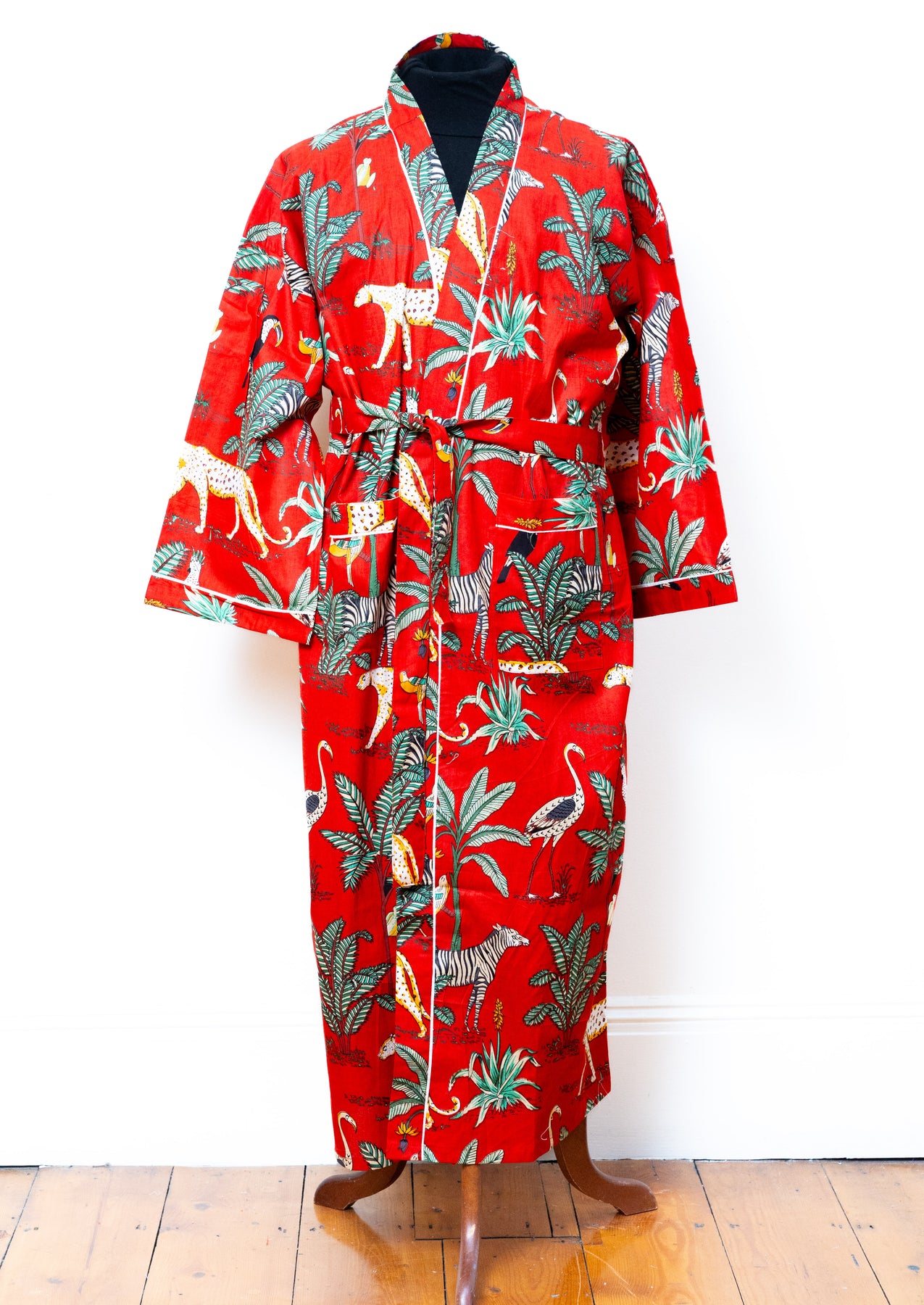 Wrap yourself in vibrant hues with our 100% cotton kimono-style dressing gown. Perfect for gifting or adding a pop of colour to your night-time routine. Heading on your holidays? Why not use it as a beach cover up!